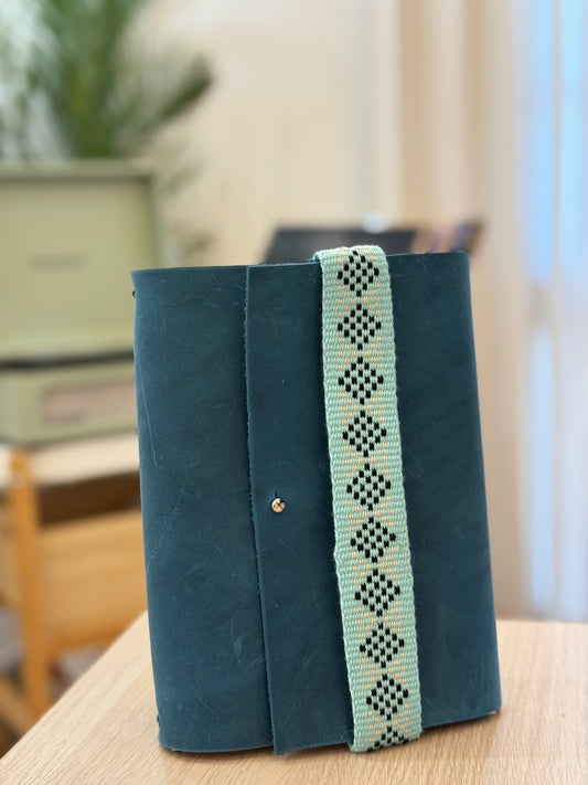Leather with Sadu Journal Blue Wide sadu