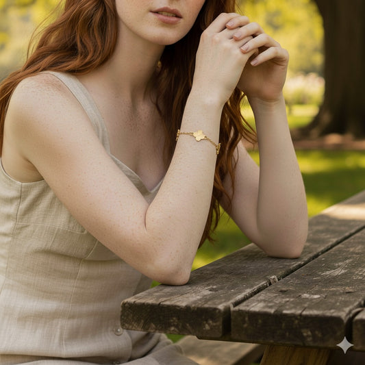 Four Leaf Clover Bracelet & Necklace Jewelry Set For Women