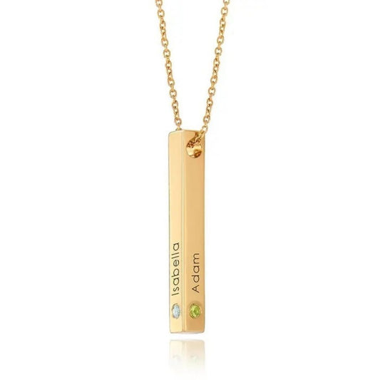 Vertical Design Engraved Names Heart Necklace With Birthstones
