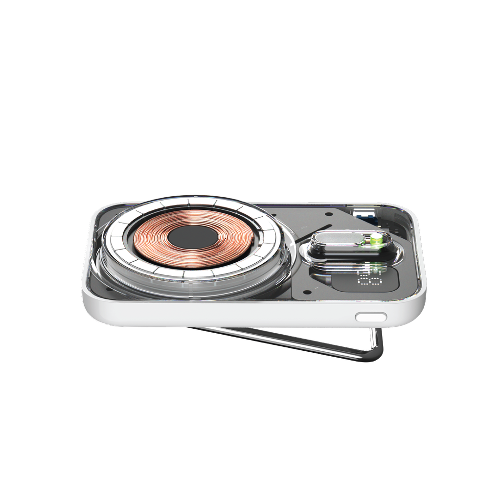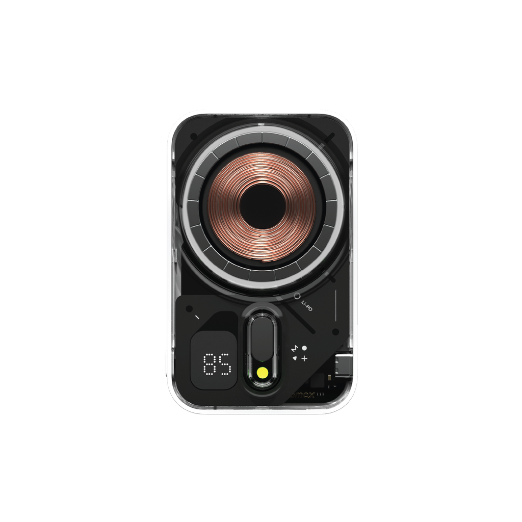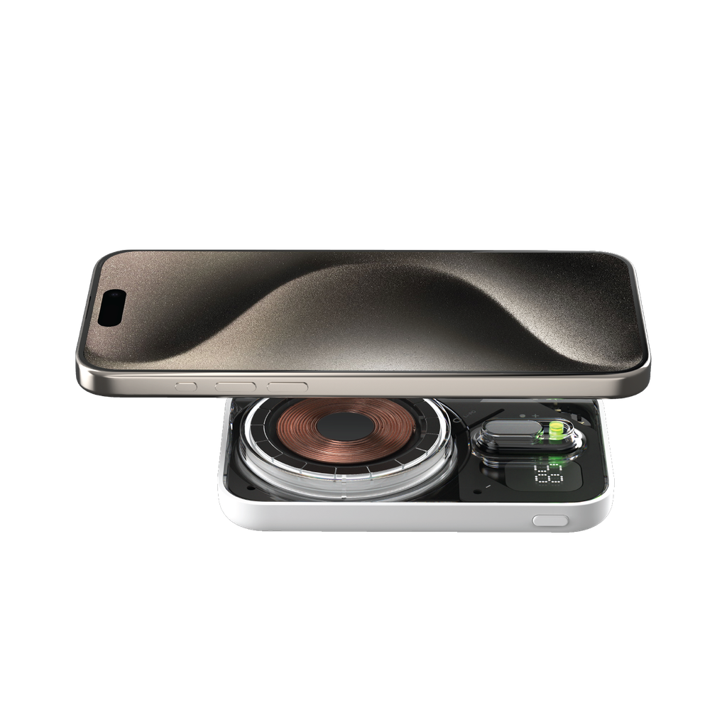 Experience effortless wireless charging with the Momax Flagship Flow Series Magnetic Battery Pack. Designed for instant snap-on charging, this compact and transparent power bank attaches securely to MagSafe-compatible iPhones. Its LED battery display keeps you informed, while the built-in kickstand lets you enjoy hands-free viewing anywhere. Lightweight and travel-friendly, it ensures seamless power backup wherever you go.