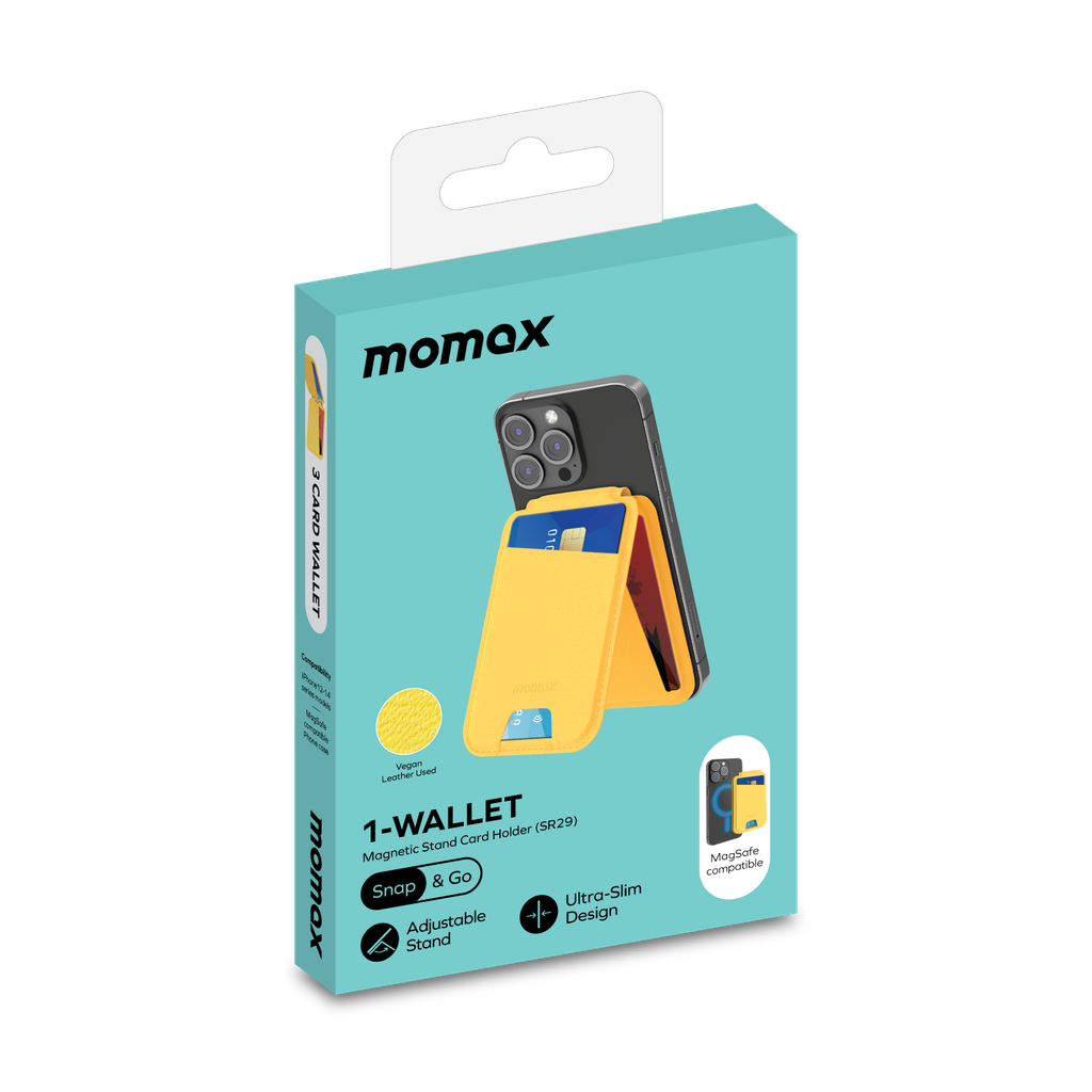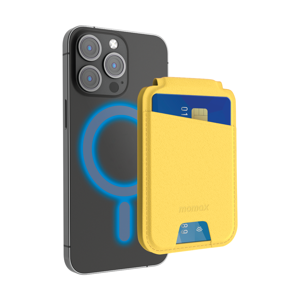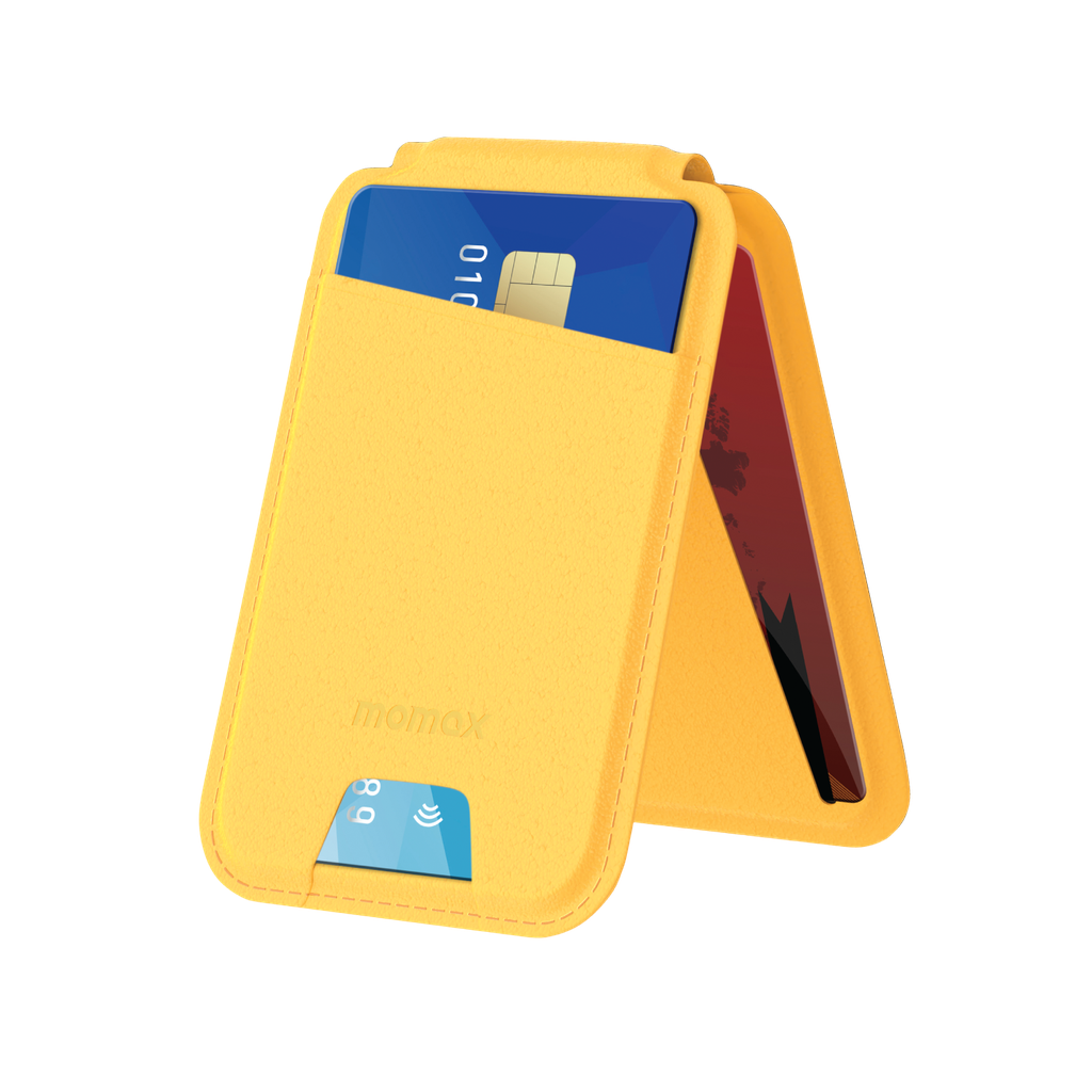 MagSafe Compatible Leather Card Holder & Stand | 3-Card Storage – Yellow