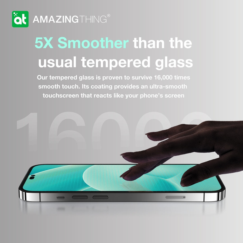 This 9H Tempered Glass iPhone Screen Protector offers almost full coverage with a color-matched frame and comfortable rounded edges. It boasts revolutionary Omni Anti-Static Technology to repel dust and is drop-resistant from 1.5 meters. The surface is 5 times smoother than regular glass, maintaining the original screen color and strong touch sensitivity. An oil/dust-resistant coating ensures easy cleaning, and its anti-reflective properties guarantee privacy and ease of use.