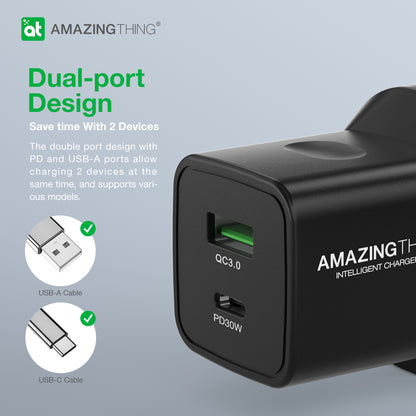 Power up faster with the Speed Pro 33W Fast Charger, featuring PD30W + PPS 33W and QC 3.0 for maximum charging speed. Its dual-port design lets you charge two devices simultaneously while being 50% smaller than standard chargers - perfect for travel and daily use. Built with an advanced safety protection system, it prevents overheating, short circuits, and overcurrent for safe, reliable charging.