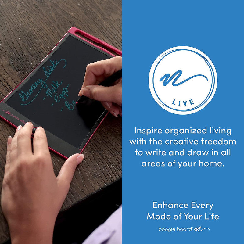 Jot is the best-selling original reusable writing tablet made by Boogie Board and is great for jotting down lists, reminders, play games with the family and so much more! Because it uses Boogie Board’s patented technology, you can write with the included stylus or anything you have on hand! When you’re ready to erase, just push the button and the board clears itself. No more erasing or wiping. Jot is made by Boogie Board, the original creator, and manufacturer of reusable writing and creativity products using LCD technology. Boogie Board sells its reusable LCD writing tablets, writing boards, drawing boards, and kid activity kits online and in retailers across the globe.