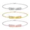 Express your individuality with the classic name bar bracelet. Personalise it with a name, date, or special message. This dainty bracelet is perfect for daily wear, layering, or gifting.