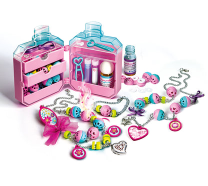An original bottle-shaped perfume dispenser that contains everything you need to create fragrant Crazy Chic pendants, necklaces and bracelets! Just pour a few drops of perfumed essence onto the absorbent discs and place them inside the pendants and beads to create super-glam-scented jewelry. Develops dexterity and creativity. Recommended for age 8 years old and above. Conceived, designed and developed in Italy.