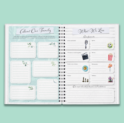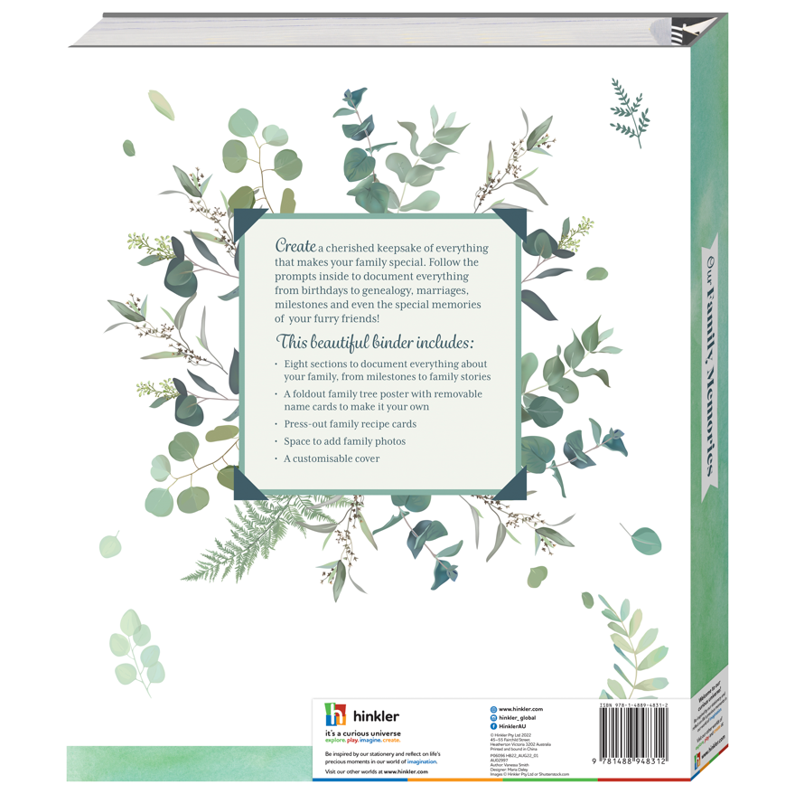 Create a cherished keepsake of everything that makes your family special in this moment with Our Family Memories. Follow the prompts inside to document everything from birthdays to genealogy, marriages, milestones and even a section on our furry friends!