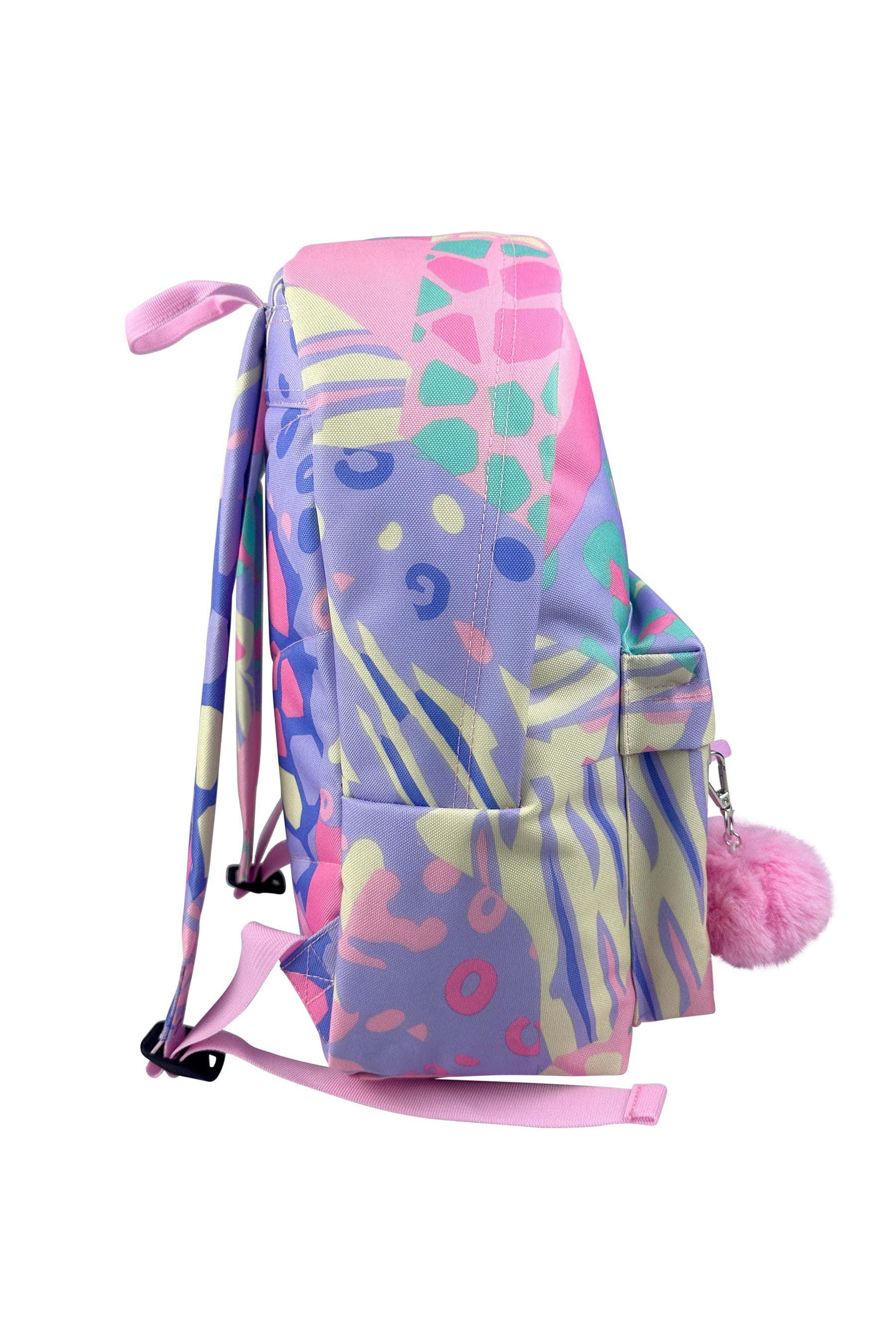 Featuring a vibrant pastel animal print and designed for maximum comfort, this spacious backpack makes carrying essentials easy and stylish. With playful touches like a fun pom-pom charm and padded features, it’s ready for school days, trips, and weekend adventures.