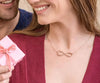 A personalised infinity necklace crafted in sterling silver with customisable names, available in elegant finishes. Perfect for daily wear or as a meaningful gift.