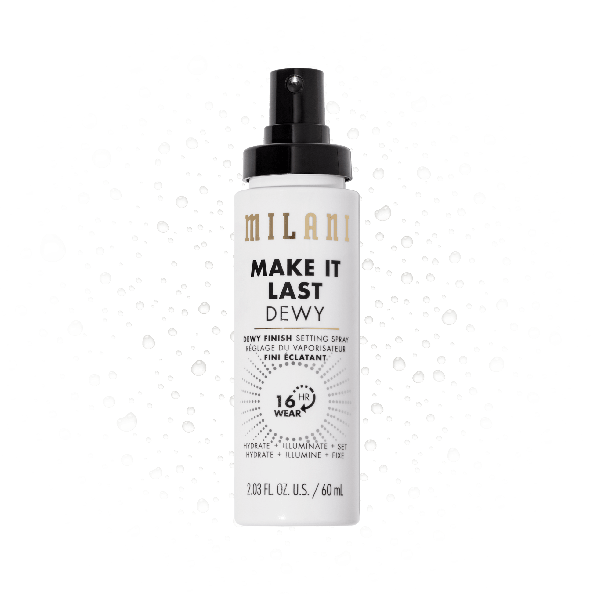 Don't let your statement slip ... set it! Our Make it Last setting sprays always keep your makeup looks striking, and now we're offering our Dewy 3-in-1 Setting Spray Hydrate + Illuminate Set in the perfect on-the-go travel size. This formula is equal parts moisturizer and time-stopper. Prime, set and hydrate your skin for the ultimate boost in brightness. Our Make it Dewy Setting Spray delivers a glamorous dose of dewy hydration to your complexion, for a fresh cooling feel. This hydrating setting spray locks in your makeup for up to 16 hours of wear. No need to worry about creasing, smudging or fading -- this setting spray locks in your look with dewiness, but not dampness. Spray it under or over your makeup, or wear on its own to make your skin really stand out. Travel extra light and keep this dewy finish spray closer than ever for the perfect glow on the go!