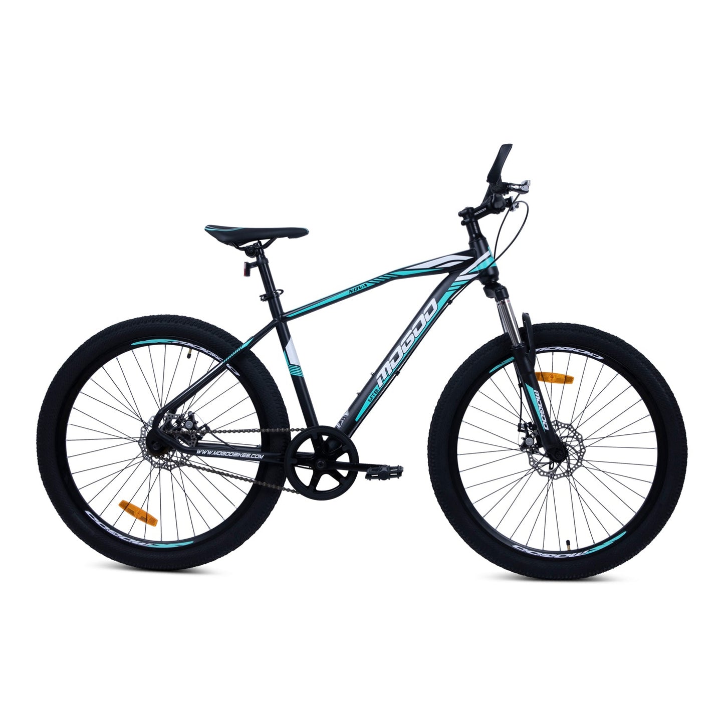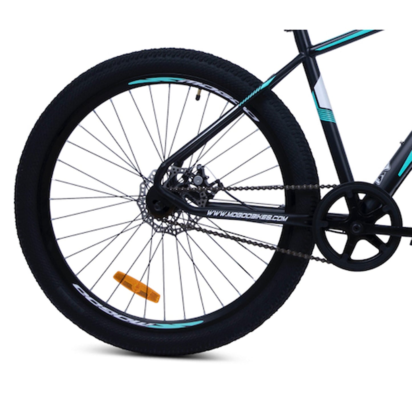 Introducing the Mogoo Nova mountain bike, your ultimate companion for tackling rugged trails and embarking on thrilling adventures. Engineered with a robust steel frame and a responsive suspension fork, this bike offers the perfect balance of durability and performance, ensuring a smooth and comfortable ride over even the most challenging terrain. Equipped with reliable disc brakes and high-quality alloy components, including the stem and brake levers, the Mogoo Nova provides precise control and confident handling, allowing you to navigate steep descents and tight corners with ease. Its double-wall alloy rims and 26" x 2.35" tires offer excellent traction and stability, ensuring optimal grip on varying surfaces, from loose gravel to rocky paths. Whether you're exploring forest trails or conquering mountain peaks, the Mogoo Nova is built to exceed your expectations and elevate your riding experience to new heights. Gear up, hit the trails, and unleash your adventurous spirit with the Mogoo Nova mountain bike as your trusted companion.