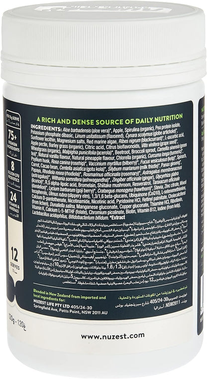 Expertly formulated, Good Green Vitality is a perfectly balanced blend of plant foods, vitamins, minerals, antioxidants, adaptogens, probiotics, and more. The specific form of each ingredient has been selected for maximum bioavailability and efficacy, their synergistic effect supporting everything from immunity to cognitive function, and energy production to digestion.
