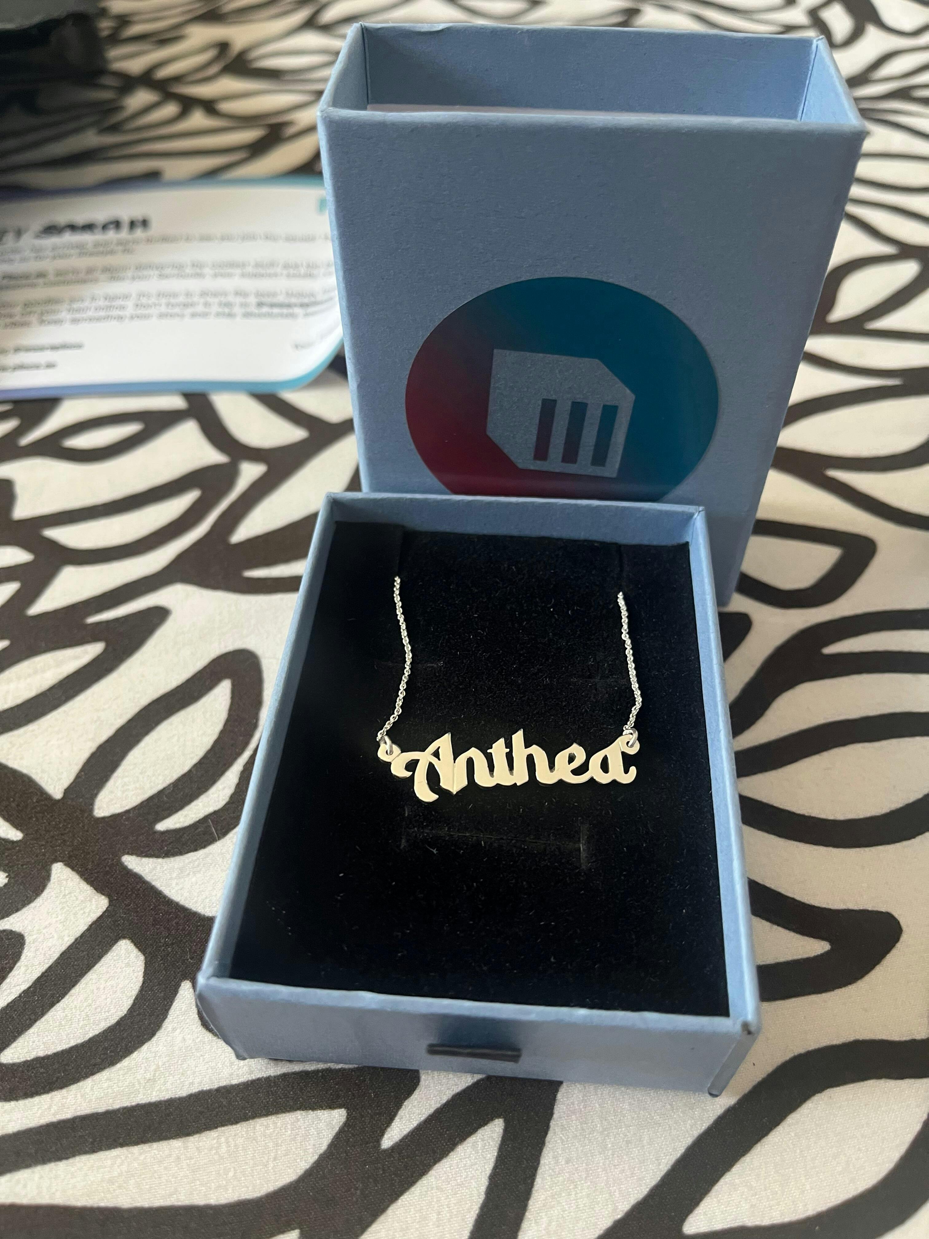 Vintage English-style name necklace in sterling silver, gold, or rose gold. Elegant, vintage-inspired, and fully customisable for a signature look.