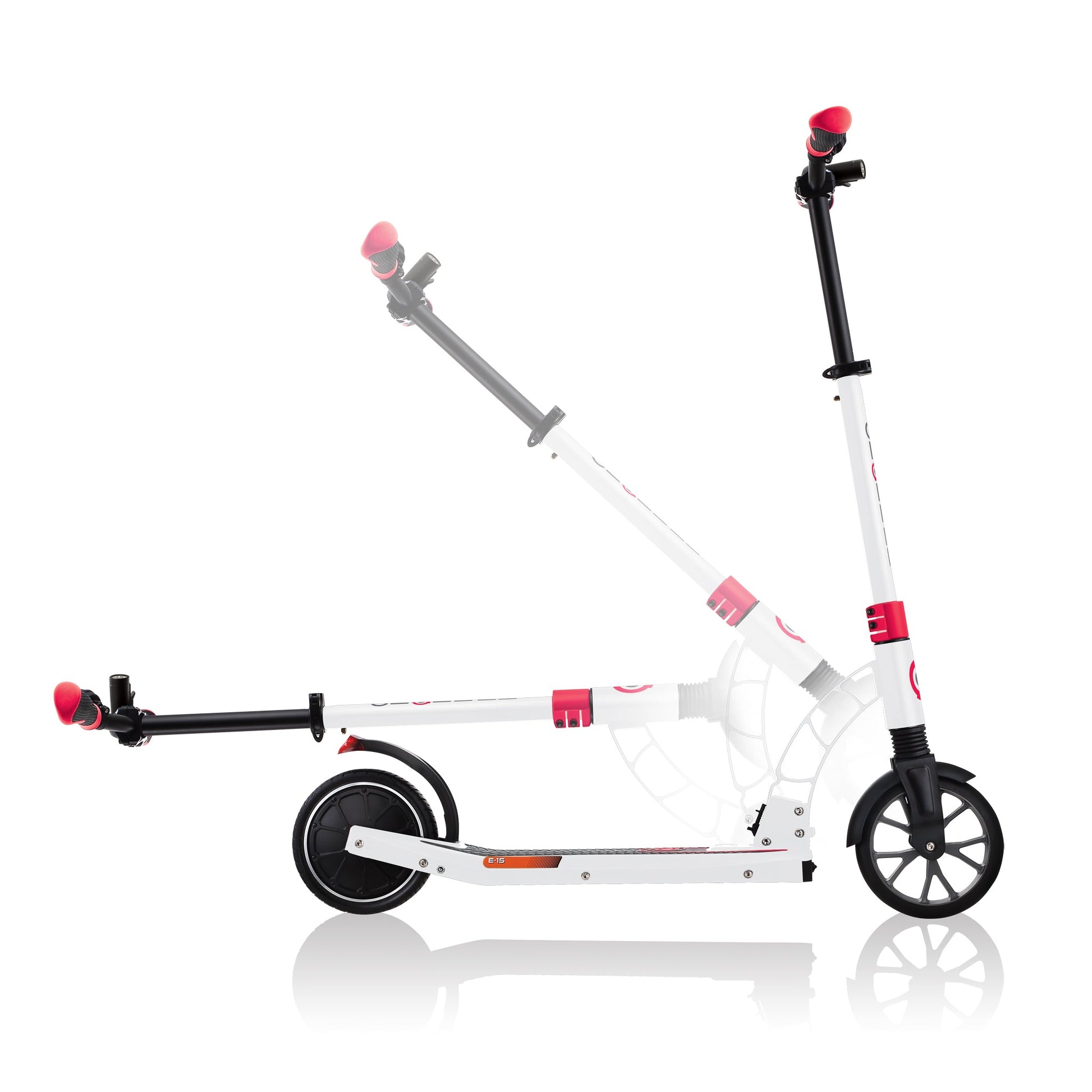 ONE K E-MOTION 15 ELECTRIC SCOOTER features a user-friendly folding system with a safety lock, ensuring easy portability and convenient storage for your next adventure.
