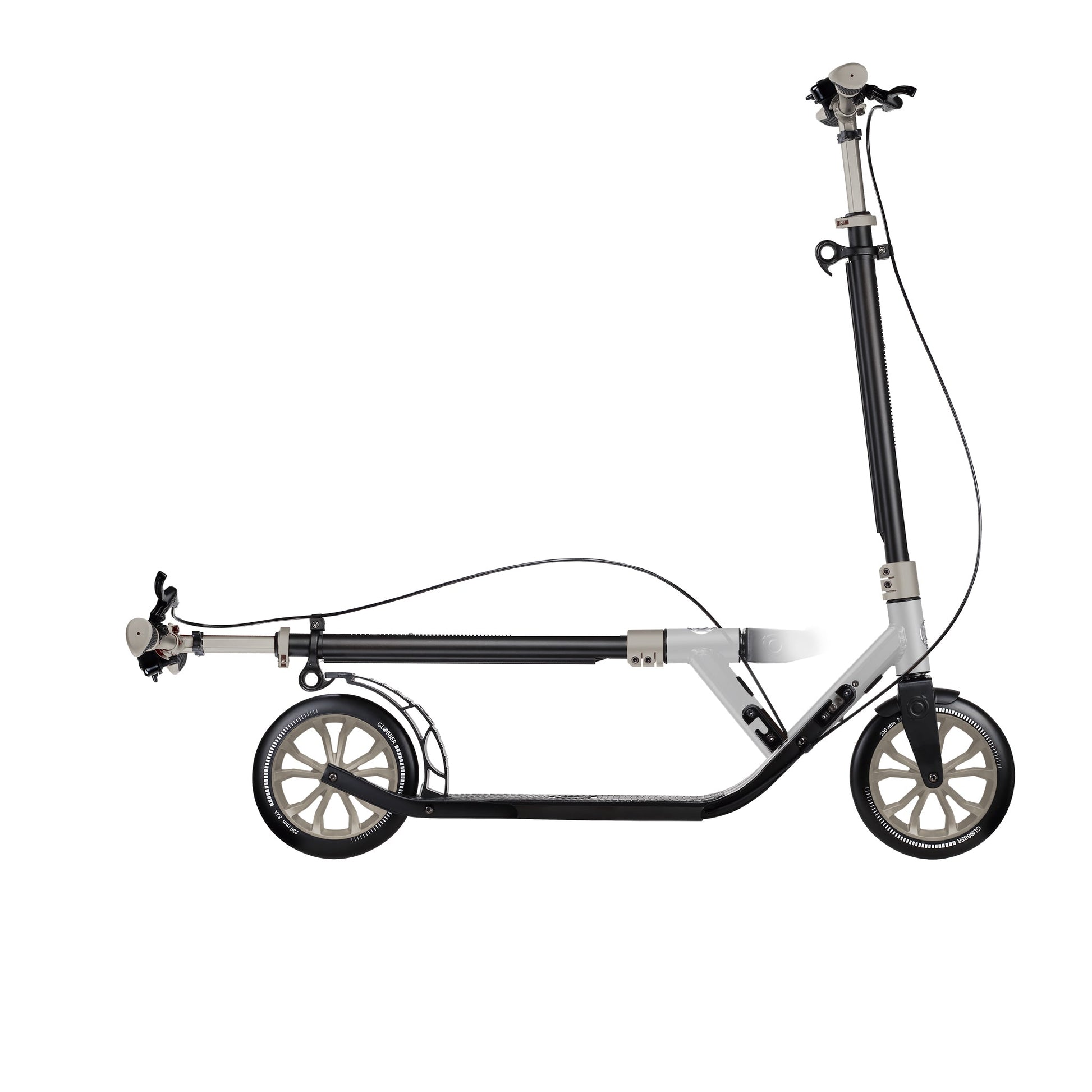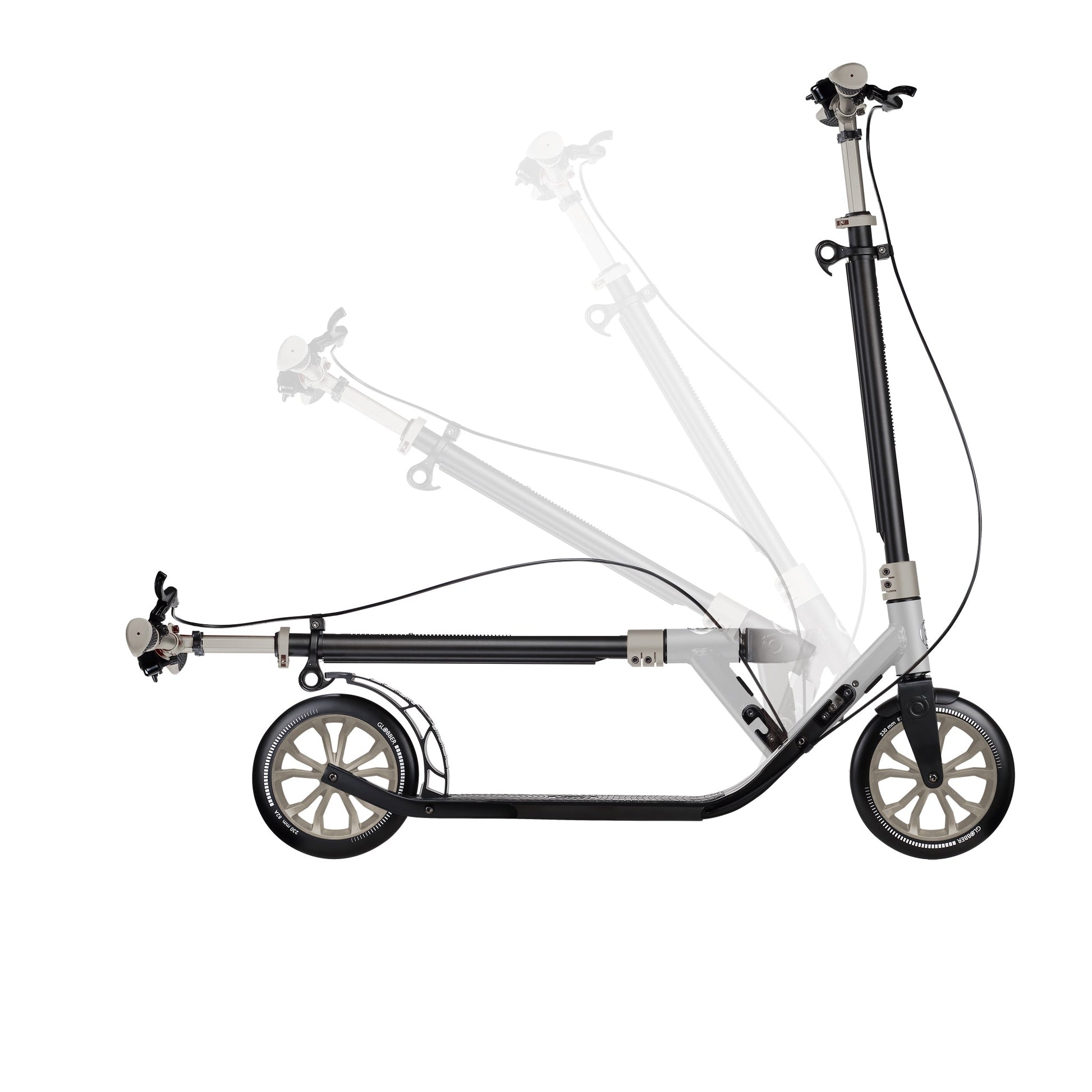 Get a ride that can keep up with your schedule! ONE NL 230 ULTIMATE is a big wheel scooter for adults with a patented 1-second clamp folding system: Lift and pull the clamp on the column to put the big wheel scooter into self-standing or folded mode.