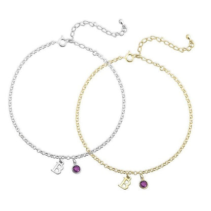 You can customise the anklet with any initial and birthstone. We craft the initials in bold uppercase letters. The engraved gemstone is attached to the chain, giving it a delicate look.