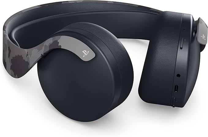 Level up your audio with the PULSE 3D Wireless Headset, fine-tuned for 3D Audio on PS5. The Grey Camouflage design adds a fresh look, while dual noise-cancelling mics, easy-access controls, and up to 12 hours of wireless play keep you connected in comfort. Compatible with PS5, PS4, PC, Mac, and mobile via 3.5 mm jack.