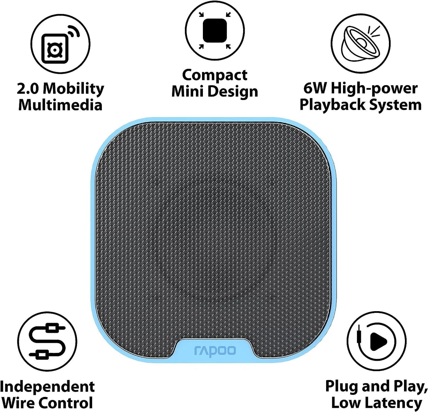 The Rapoo A60 Compact Stereo Speaker delivers clear, high-quality sound with a 3W high-power playback system. Featuring a compact mini design, independent wired volume control, and low latency, it’s perfect for laptops or desktops. USB-powered with a 3.5mm audio input, these wired speakers are easy to move around and include fingertip controls for convenient operation, backed by a 2-year hardware warranty.