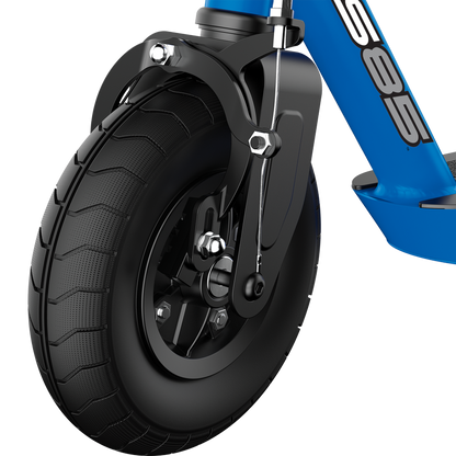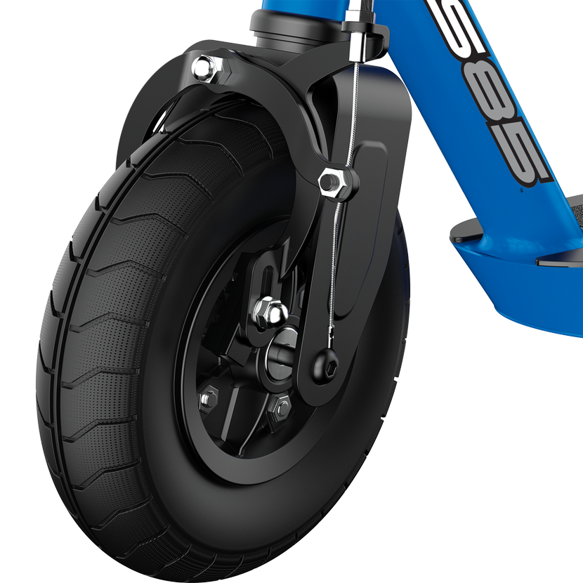 All the power is now in your hands with the Razor Power Core S85 electric scooter. It features a hand operated front brake in addition to the rear-fender brake, creating a dual-braking system for better control. The 8" (200 mm) pneumatic front tire delivers a smoother ride on uneven terrain. The high torque Power Core hub motor delivers top speeds of up to 10 mph (16 km/h) and its rechargeable battery provides up to 35 minutes of uninterrupted ride time on a single charge. For riders age 8+ and up to 120 lbs (54 kg), the all-steel frame and stable rear-wheel drive make the Razor Power Core S85 electric scooter a safe, solid, and smooth ride to bring out your fun side.