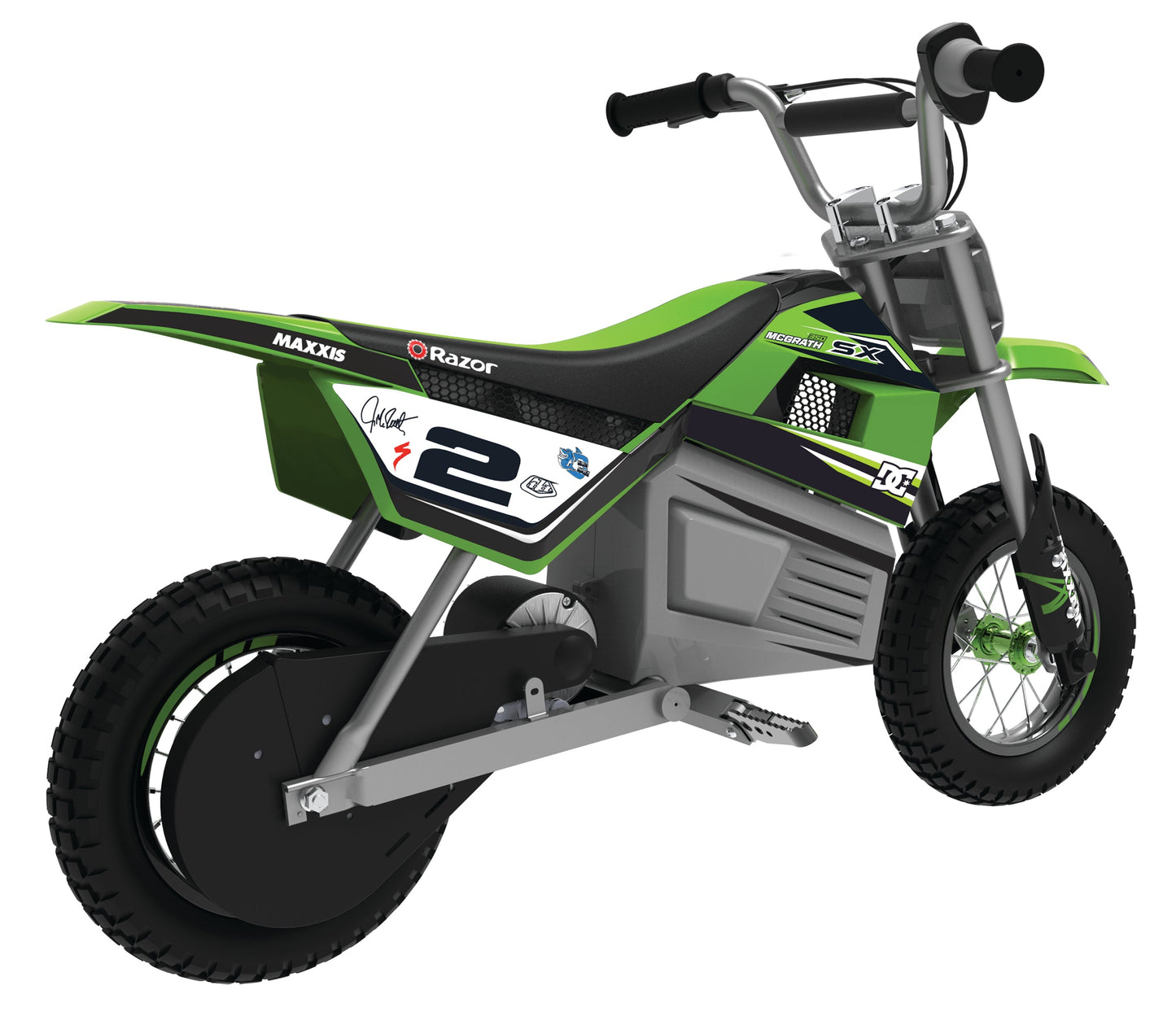 What better way to get your start on dirt than with the winningest supercross rider in history, Jeremy McGrath. The SX350 McGrath scales his iconic bike down to size for younger riders, featuring authentic MX-frame geometry, motocross-spec tires and rear brake for a true to life ride. It’s the perfect start for the next generation of motocross riders. For riders ages 13 and up and 140 pounds (64 kg).