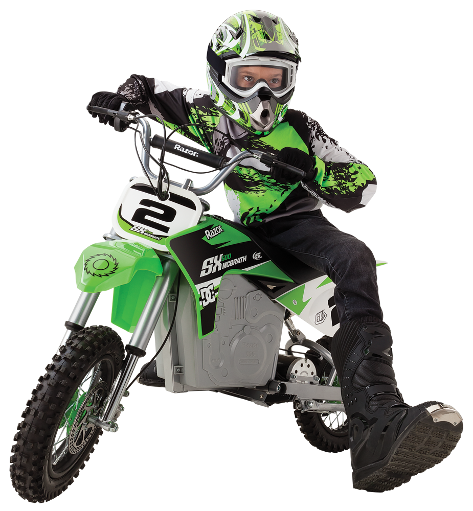 FIT FOR A KING: Inspired by the winningest motocross rider in history, King of Supercross – Jeremy McGrath, the SX500 McGrath features authentic McGrath graphics and fairing design, genuine dirt bike frame geometry and a high-torque, variable speed motor for a super-charged experience.