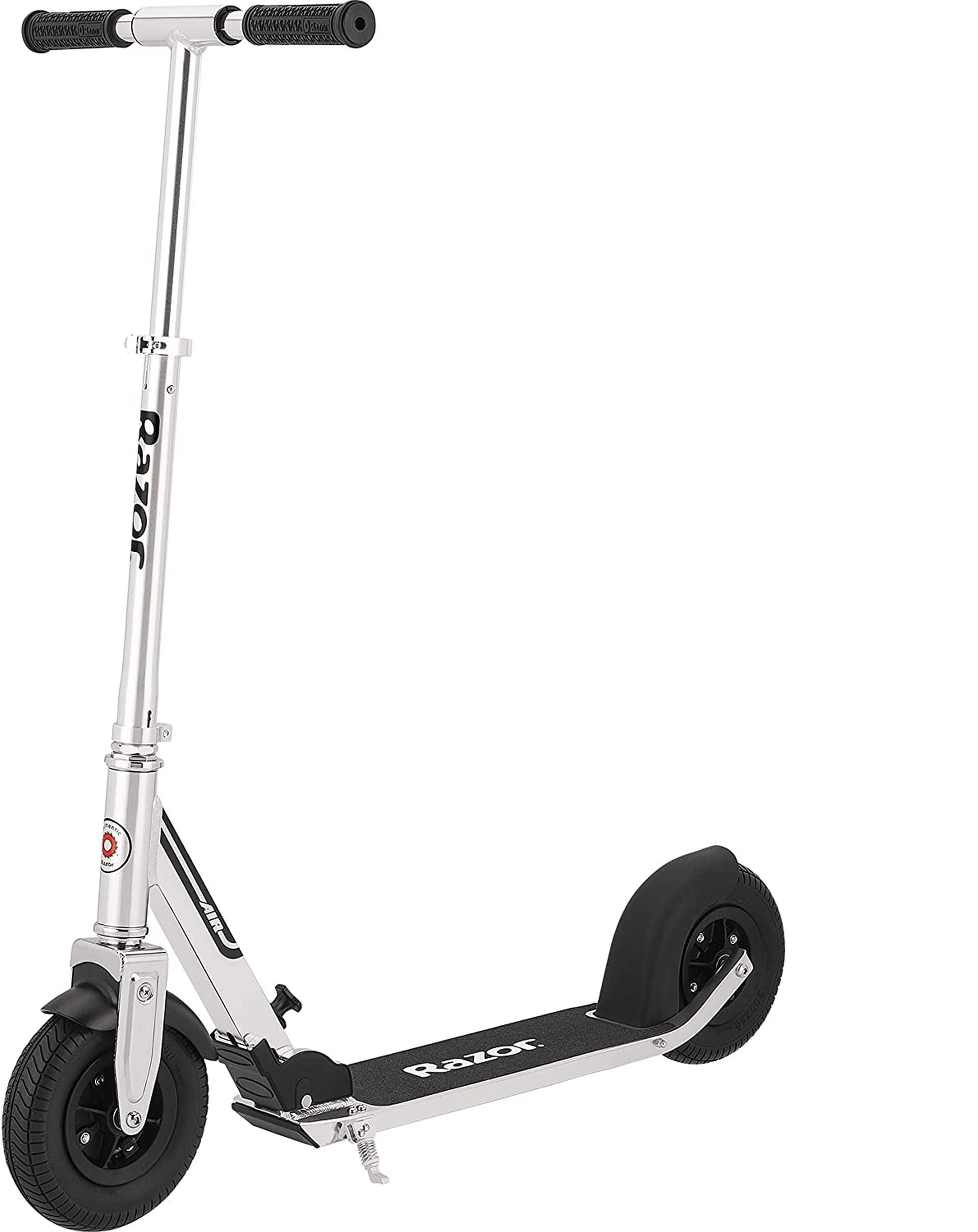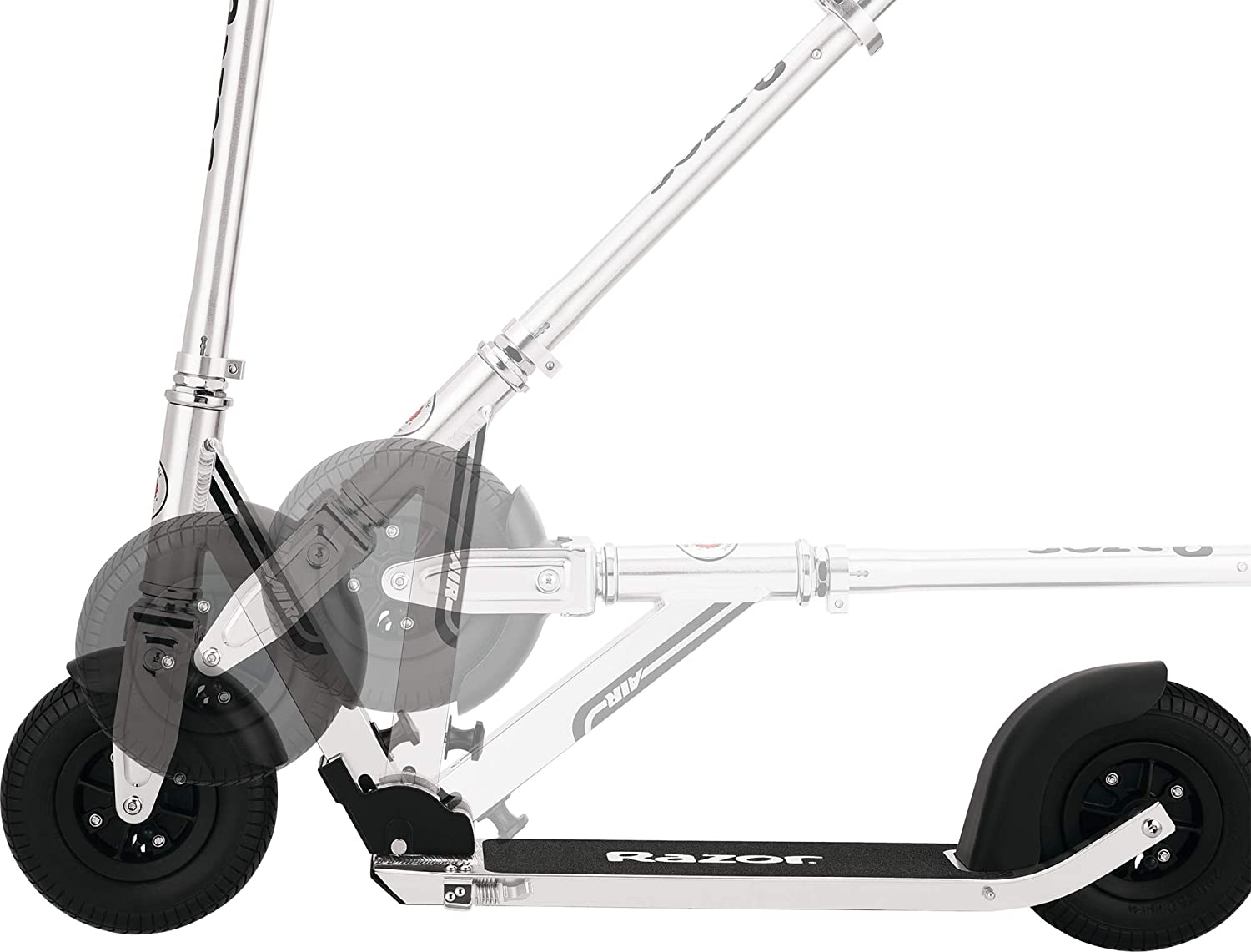 The A5 Air is built Razor tough for everyday commuting on rough, urban terrain. With adjustable-height handlebars, an extra-long deck, 8” (200 mm), super-strong, shock-absorbing, pneumatic tires, this scooter is designed to tackle the toughest commutes. Our patent-pending, anti-rattle handlebars and folding system ensure that the A5 Air is the smoothest and most comfortable ride around. And, with a sturdy, easy-fold, aluminum frame, the A5 Air is designed to last. Whether you’re riding to work or running errands, the A5 Air’s got your back, so go ahead – kick start your commute!