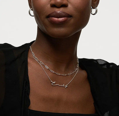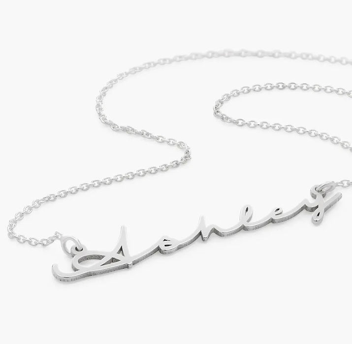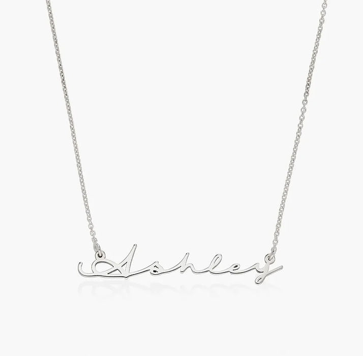 Personalise your style with this signature name necklace, featuring elegant flowing letters and a design that reflects your individuality.