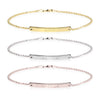 Personalised curved bar name bracelet in sterling silver – sleek design with custom engraving, available in gold, rose gold, and silver finishes.