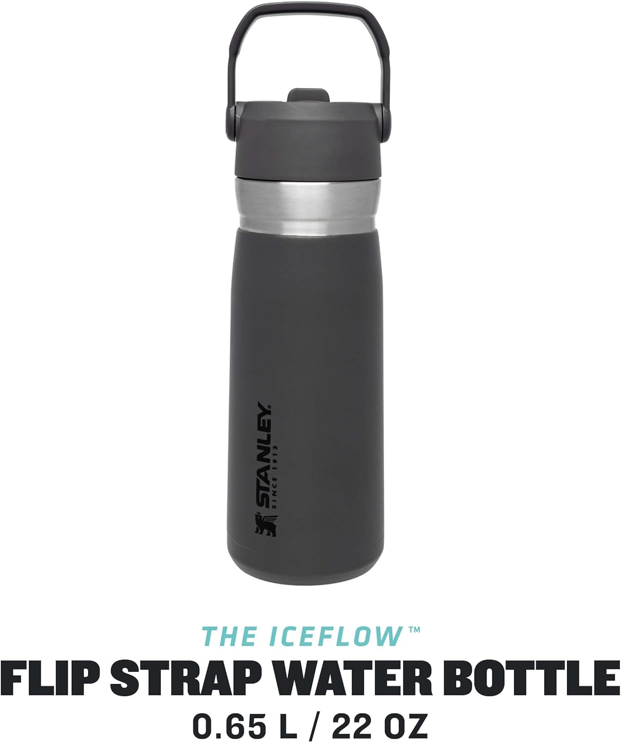 IceFlow™ Flip Straw Water Bottle 0.65L / 22 OZ Charcoal
