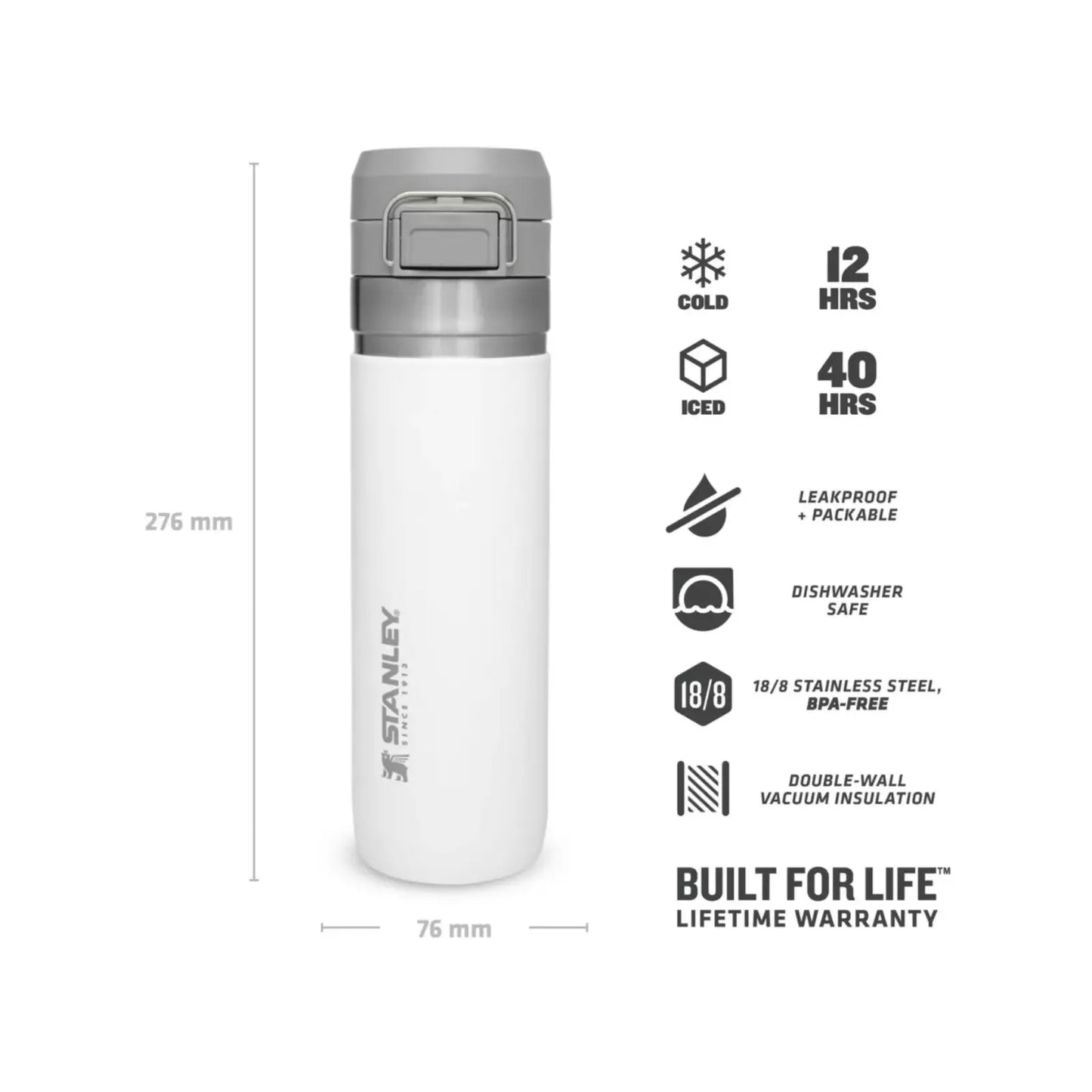 DURABLE AND SAFE: This Stanley water bottle is built for life with a 18/8 high-quality food-grade Stainless Steel construction that is rugged and rust-proof. It is also made with BPA FREE materials, keeping its contents safe to consume.