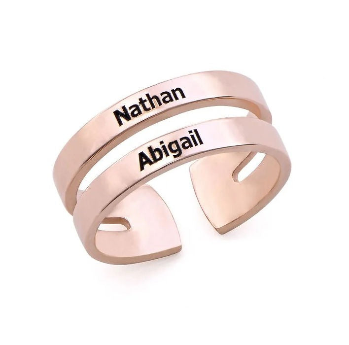 Add a touch of elegance and meaning to your style with our customisable ring with two names, crafted from premium 925 sterling silver. Perfect for daily wear or as a thoughtful gift.