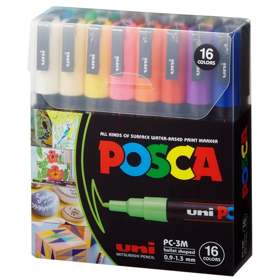 The universal bullet tip of the PC-3M adapts to all types of creation. The fine-point POSCA PC-3M is the quintessential creative tool used by connoisseurs. With a precise, assured stroke, it can customize, create, decorate and mark anything that inspires you.