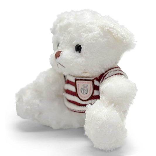 White Teddy Bear 25cm with White & Maroon Stripes T-shirt White Teddy Bear 25cm with White & Maroon Stripes T-shirt